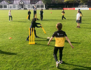 De kinderen zijn constant in beweging en spelen ‘Smash Cricket’ (Tip & Run), een dynamisch cricketspel waarbij meedoen, tempo en plezier voorop staan. Ieder kind is even vaak 'aan bat' en krijgt dus evenveel ballen om te slaan.