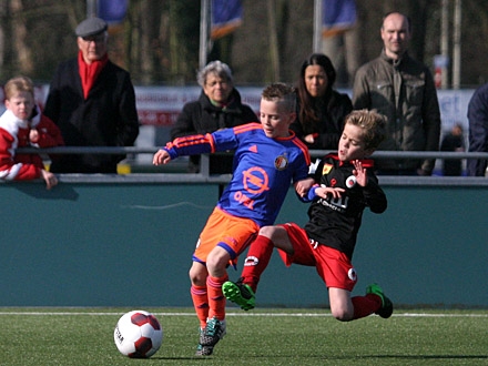 De halve finales bij de U9 zijn gespeeld. Feyenoord wint met 3-1 van Sparta. De andere halve finale eindigde gelijk. Sparta wint na strafschoppen. De finale wordt dus een Rotterdamse derby. Aanvang: 15.50 uur op veld 1a. Op veld 1b vindt dan de wedstrijd om de 3e en 4e plek plaats tussen Excelsior en AFC.